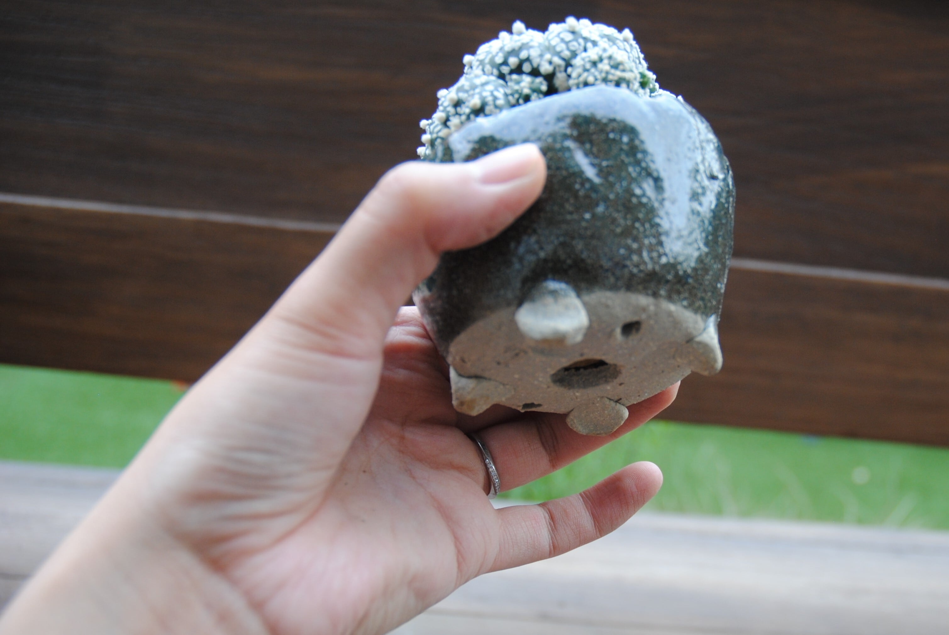 棘が退化し、綿毛になった人に優しいサボテン、兜丸。
